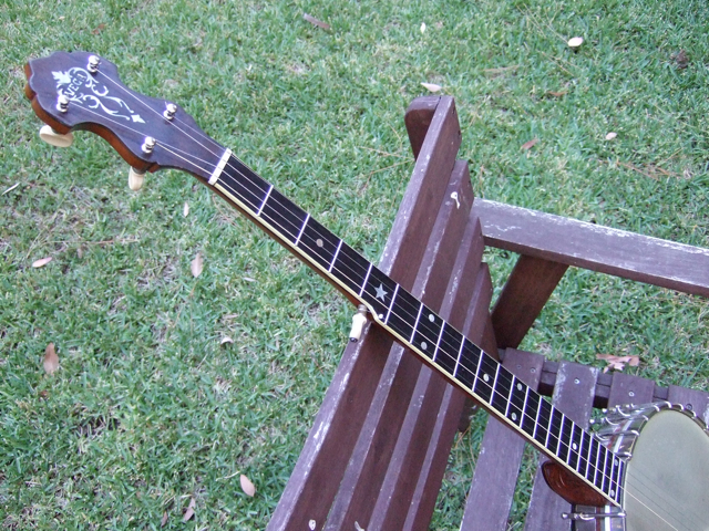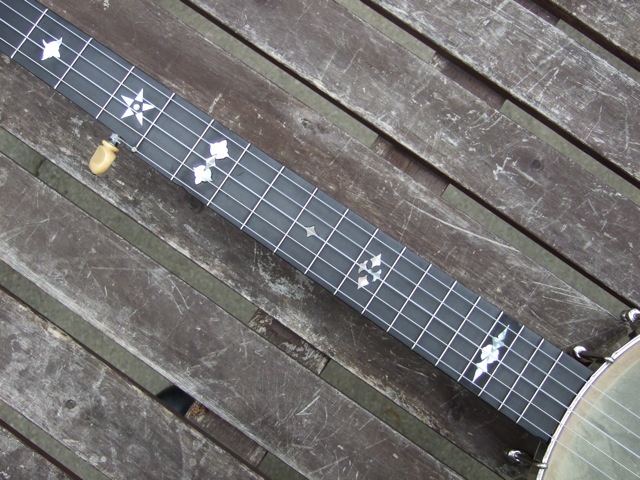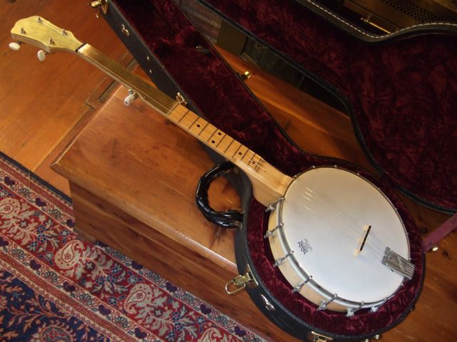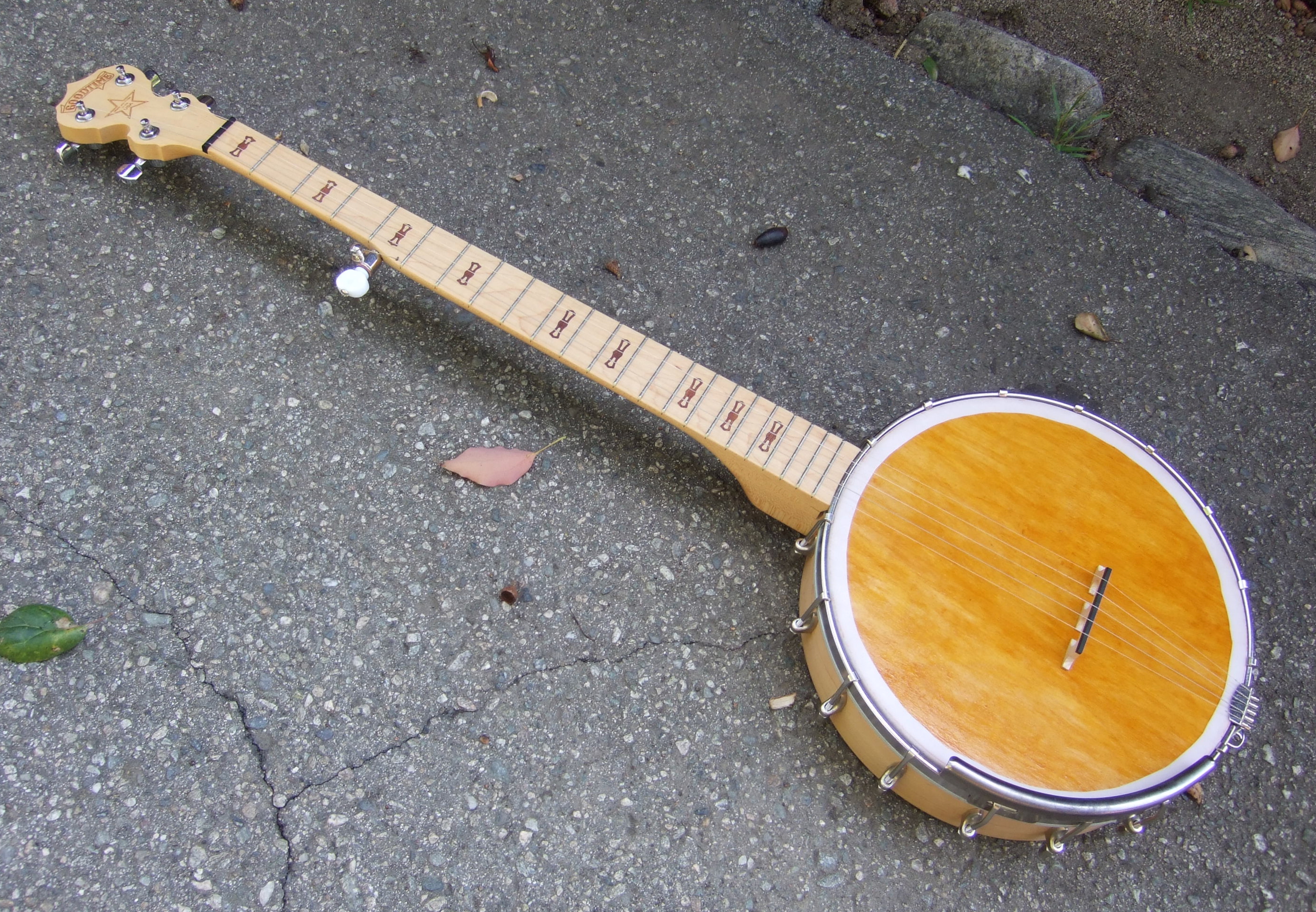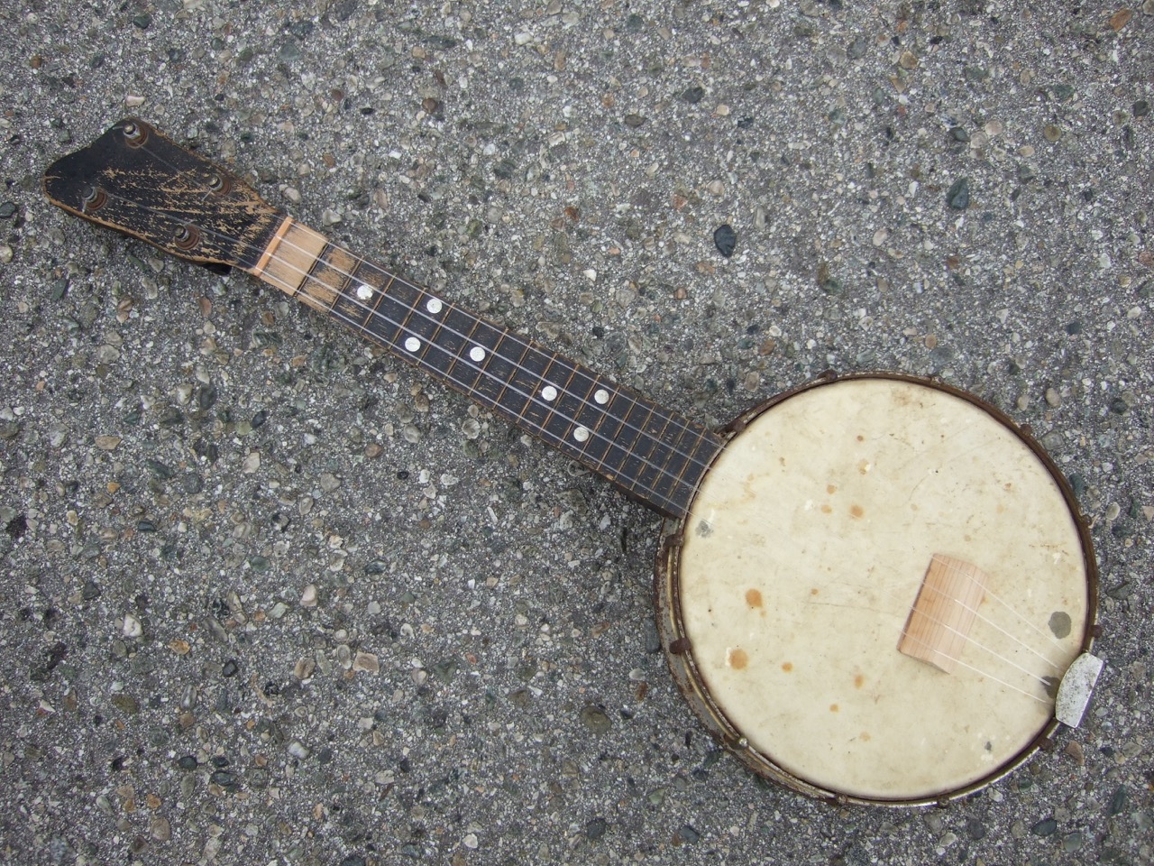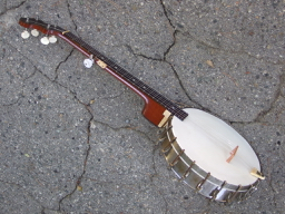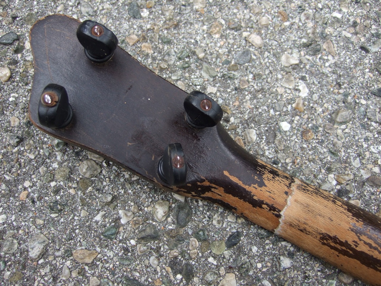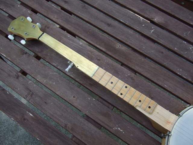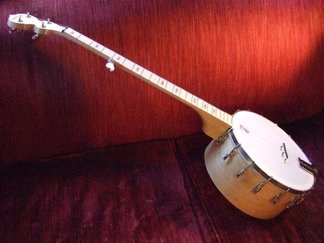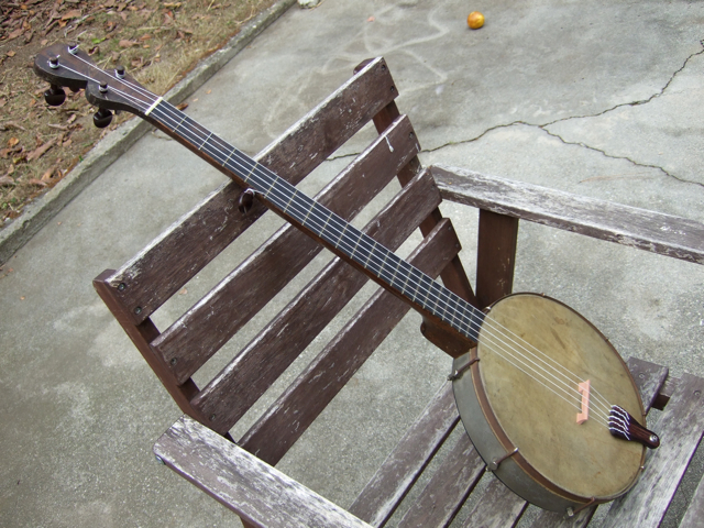 April 2013 -- Eight months, on and off, but finally playable: my own Fairbanks Electric banjeaurine (affordable because it needed new neck lamination and reenforcement, fingerboard reglue, minor rim (different serial number) repair.