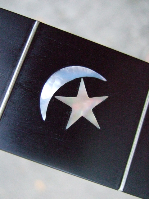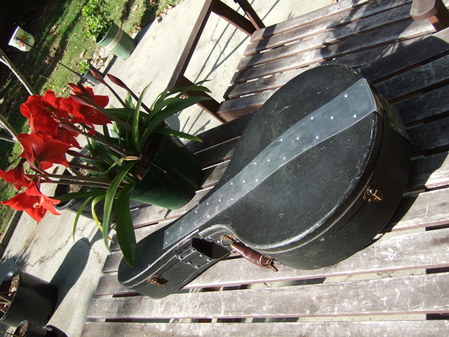 I finally scored a proper Dobson Great Echo (the original internal resonator). It's likely the original Buckbee neck. Brass, copper, and pearl inlays have been so identified before. The tuners are pretty fine, too.