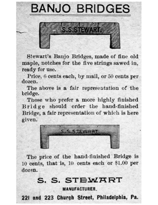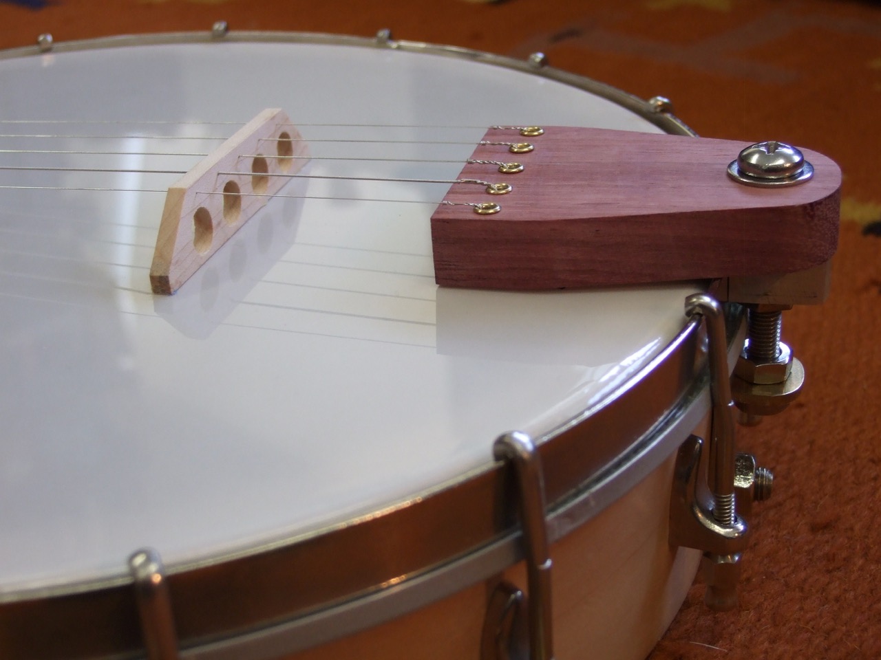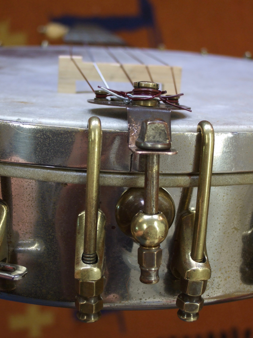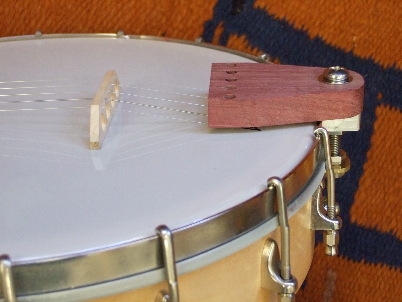Brilliantly designed bridge and tailpiece that allowed a stunning confirmation of break angle and consequent frequency modulation as the origin of characteristic banjo ring. (Search: "banjo physics" on the Web.)
