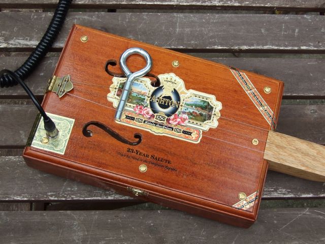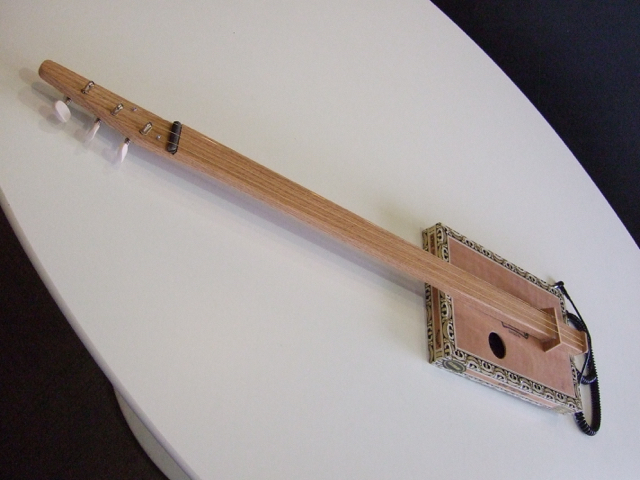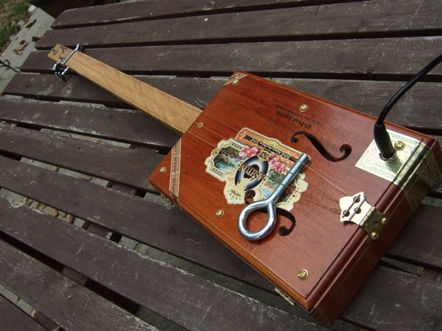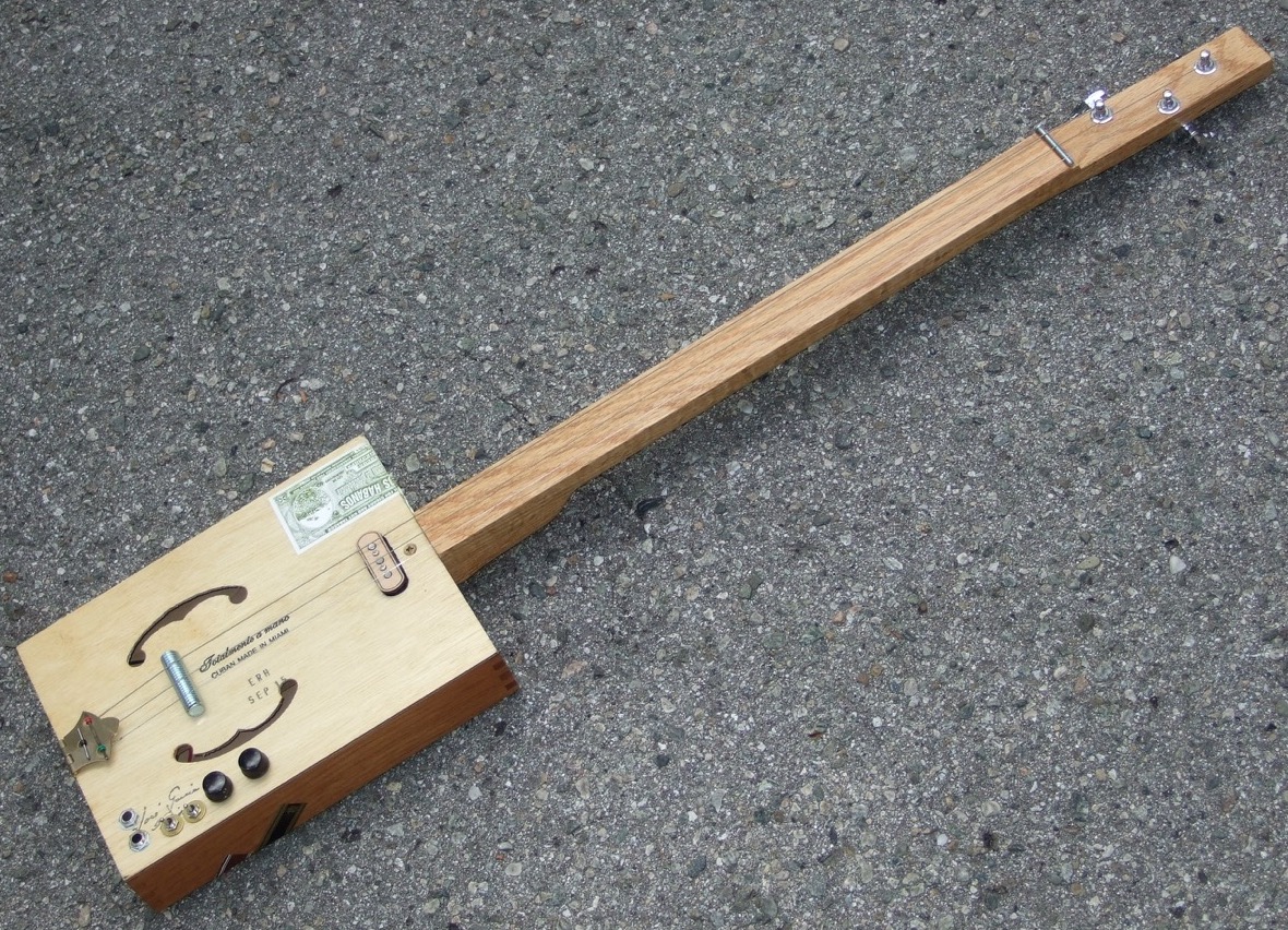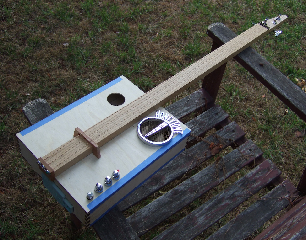 I came across this neck (or stick)- on-top design on line and recommended it to my students who had no building experience but wanted a stringed instrument that actually could be played. The amount of necessary carpentry is minimal. The genius of the design is the floating bridge, which connects the strings to the soundboard without touching the neck. I made this one as a demo for my class, using only hand tools. The bridge wood (and tailpiece) came from the headstock cutout, which I did with a coping saw. Of course, it's electric, with a peizo potted into a bottlecap.