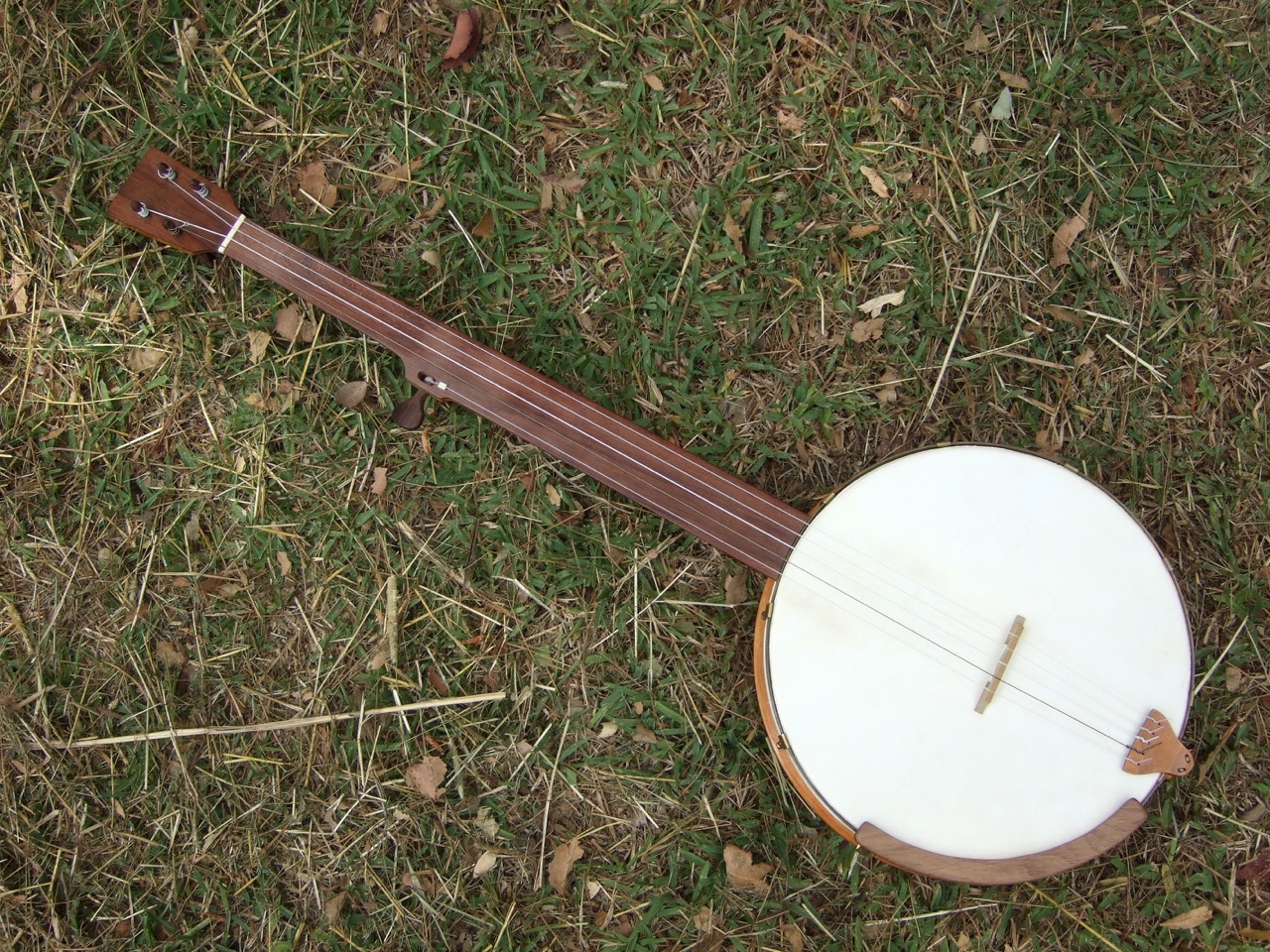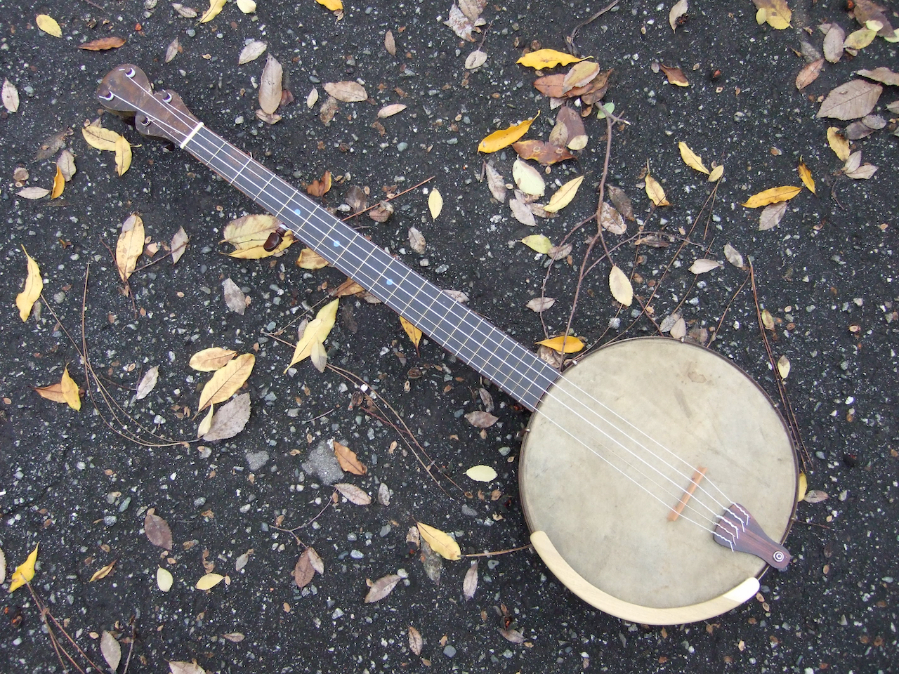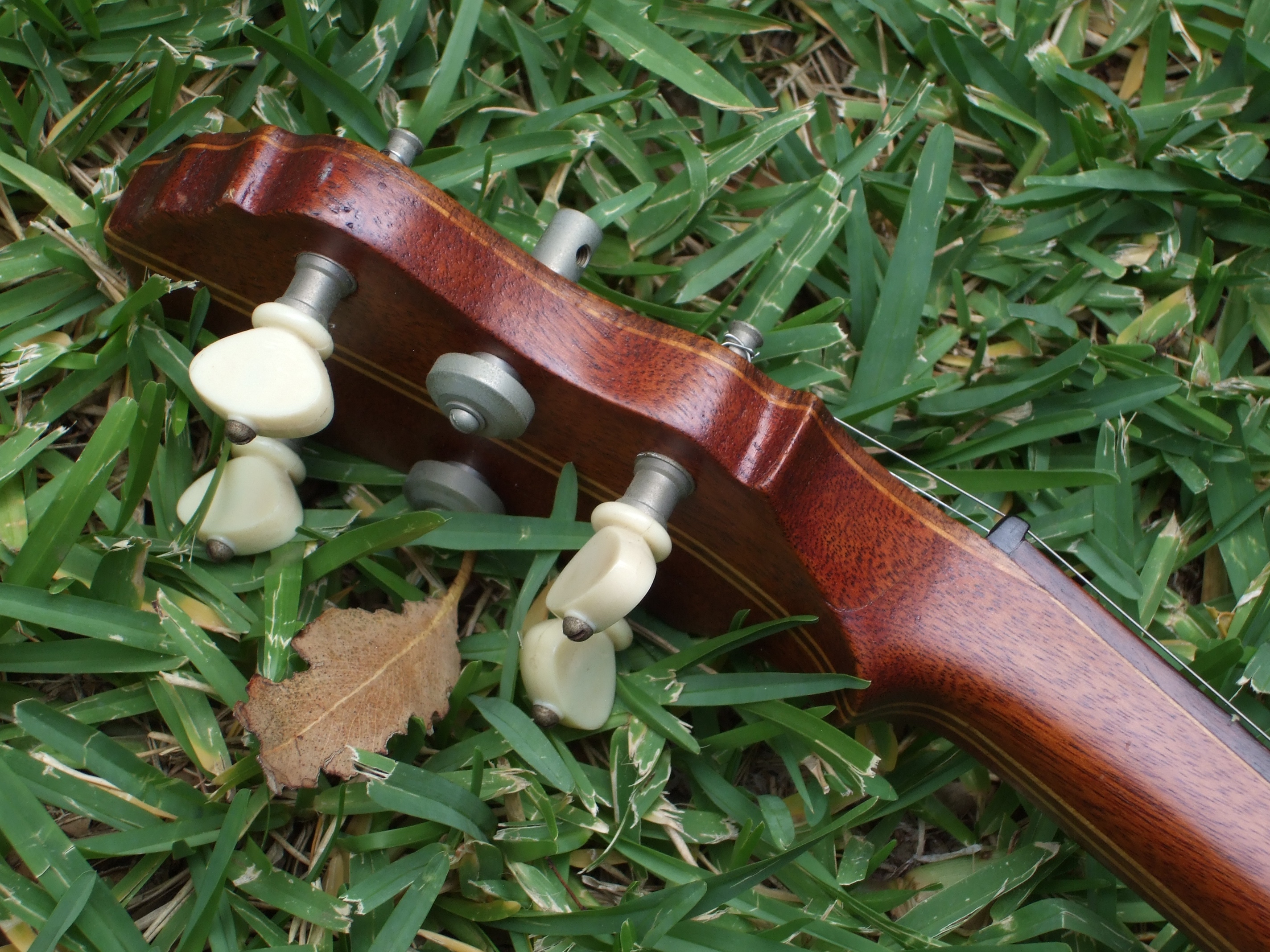 A fellow at Piccolele Place, in Shrewsbury VT, puts new 5-string necks on old banjo ukuleles. This one has a 13" scale and a 7" head. All I did was rig up an arm rest.