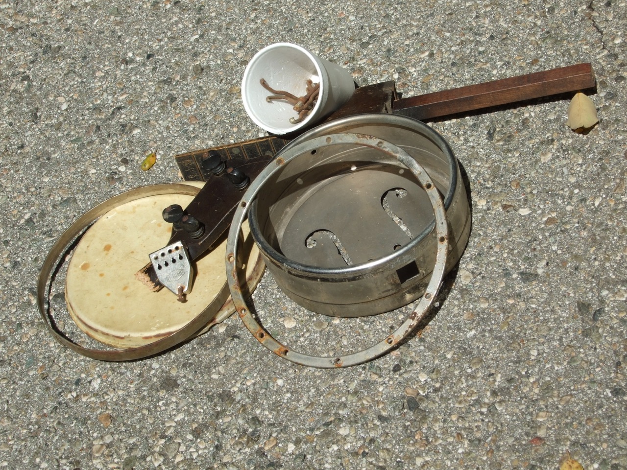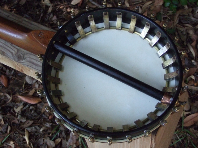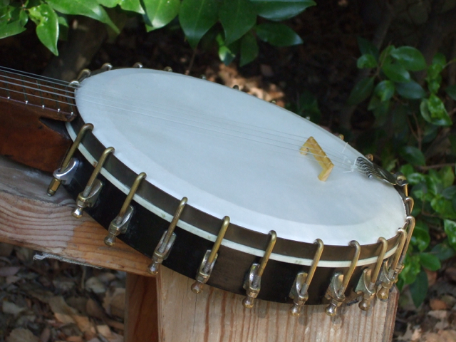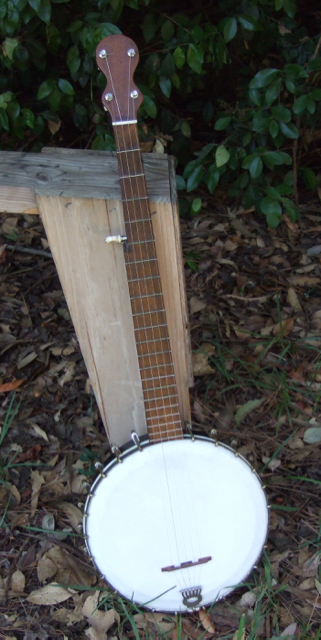 Spring 2013 -- an eBay orphan arrived on my doorstep bereft of five tuners, nut, one fret, bridge, tailpiece, and tailpiece anchor and also with a cracked dowelstick. Most likely, it's an inexpensive 90 year old masquerading as a 140 year old. Nevertheless, it's rich in banjo mojo.