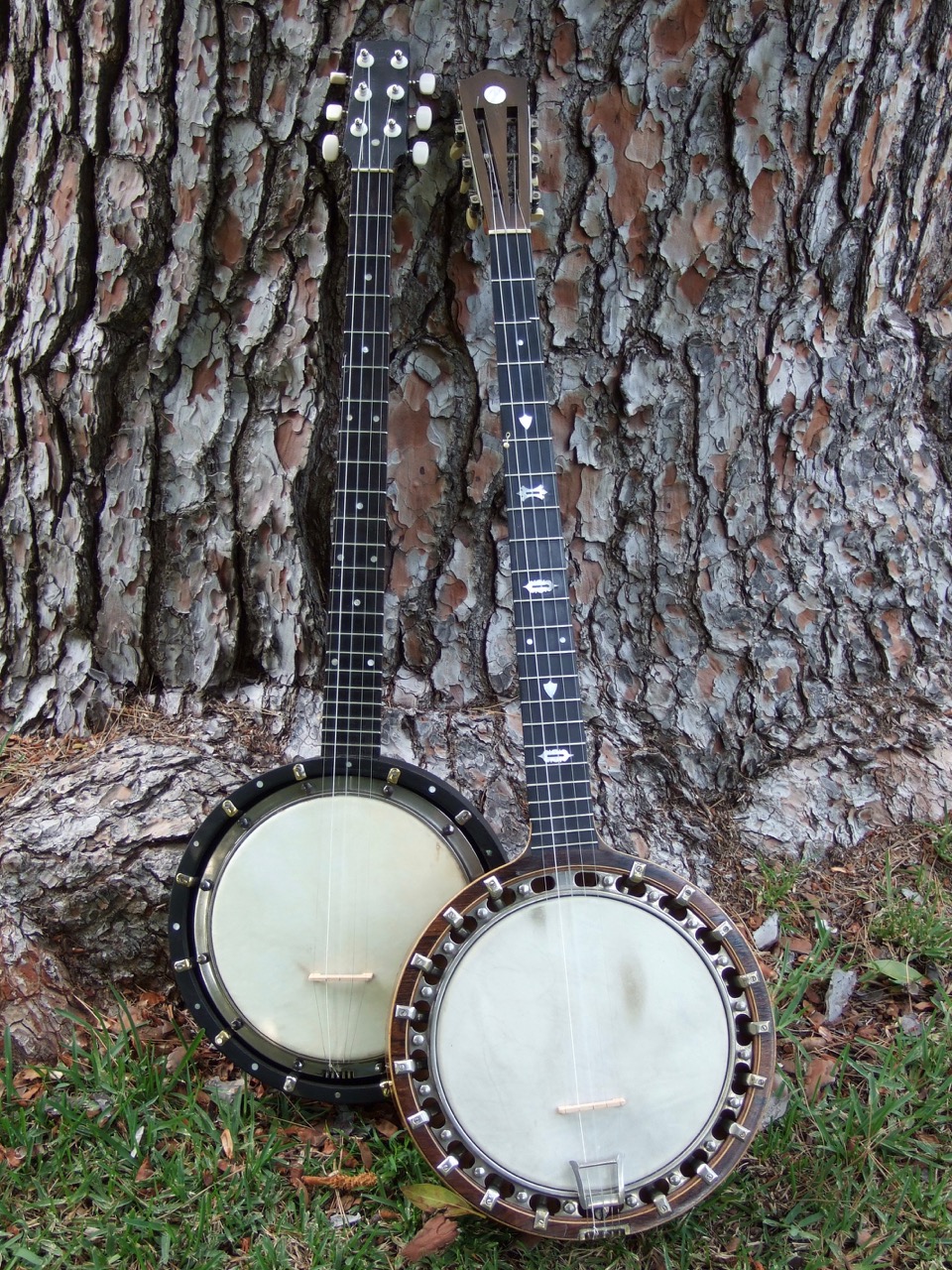 Of disputed provenance and long in disrepute, zither banjos were hugely popular in Britain during the first half of the 20th Century. These are from the most prolific manufacturer, Windsor, a model #2 and #11 (from near the top and bottom of their line).