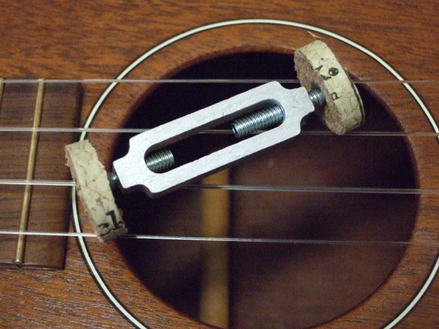 For $99, you can buy a scissor jack from Stewart-MacDonald to help with gluing down loose internal braces. I made this out of a small turnbuckle to repair a baritone ukulele.