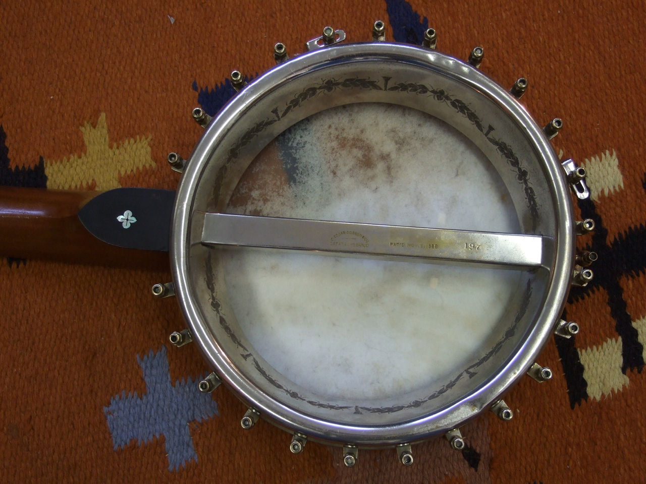 Another eBay orphan (sporting the 1886 patent of Henry Hoseus of Brooklyn, New York) whose saga is described in detail in the SEPTEMBER 2016 entry of Banjo Physics 411.