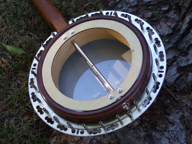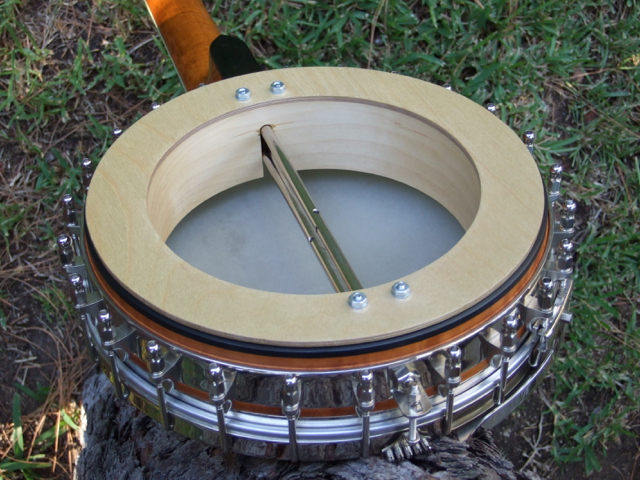 Within the span of a few weeks, I had three exchanges with people interested in internal resonator construction. I thought I might try putting one on a favorite banjo. A lighter bridge than what had worked previously rendered it sublime. (October 2017)