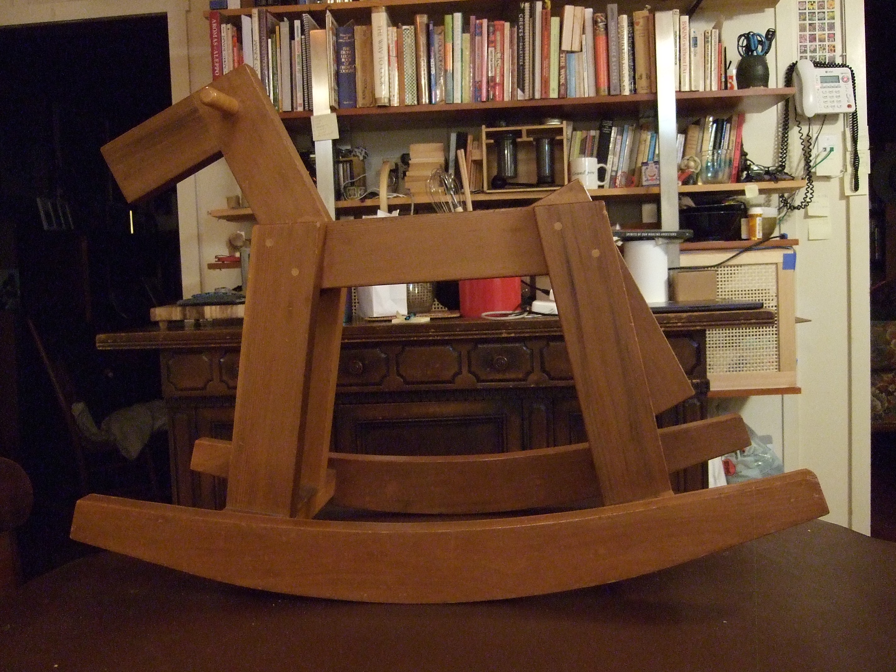 Designed and fabricated in 1985, this trusty old nag came out of retirement to delight a new generation. (The design is brilliant. There are no metal fasteners, and it has withstood strenuous use by adults over the years. The rockers themselves are particularly clever.)
