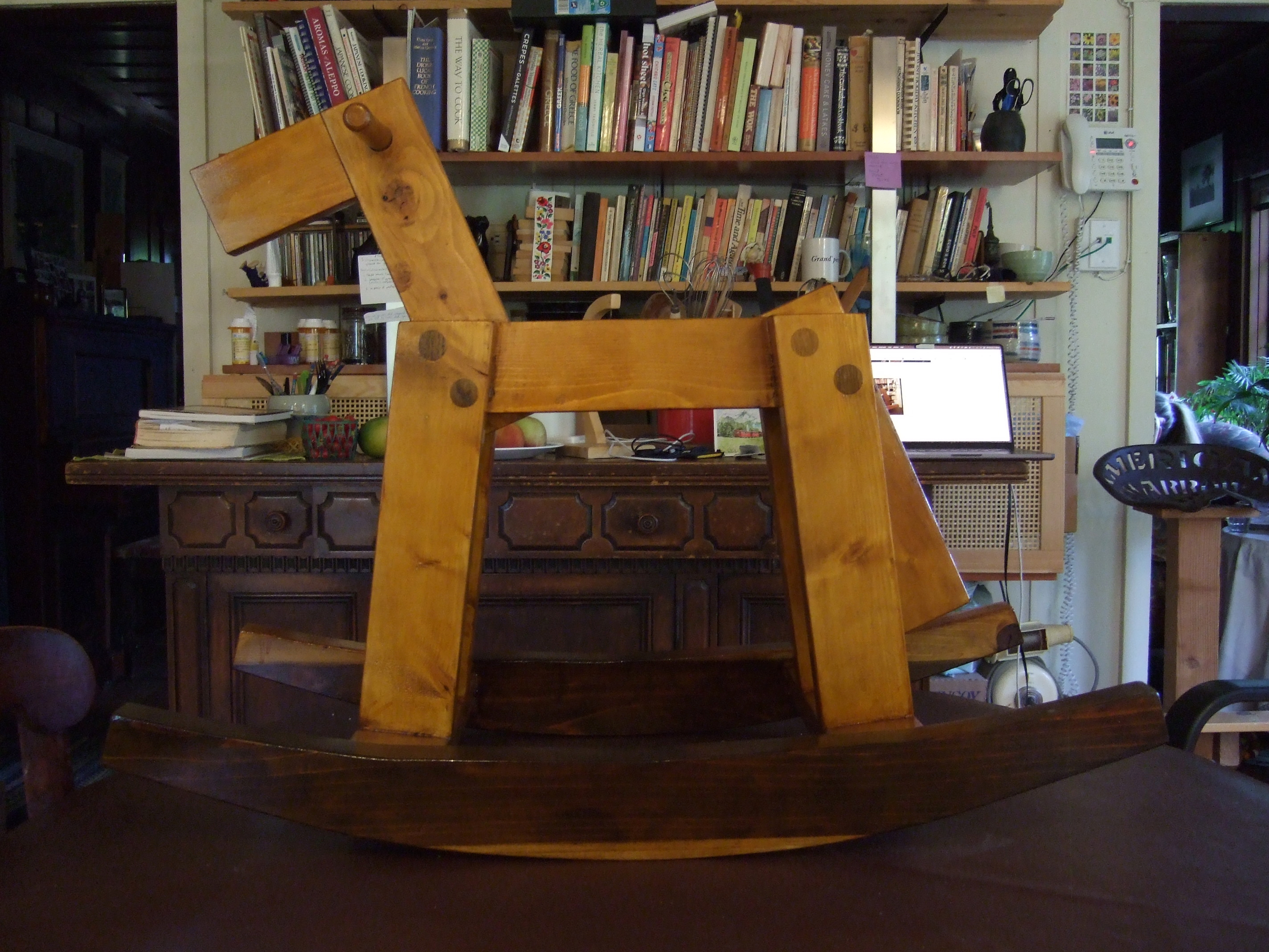 Designed and fabricated in 1985, this trusty old nag came out of retirement to delight a new generation. (The design is brilliant. There are no metal fasteners, and it has withstood strenuous use by adults over the years. The rockers themselves are particularly clever.)